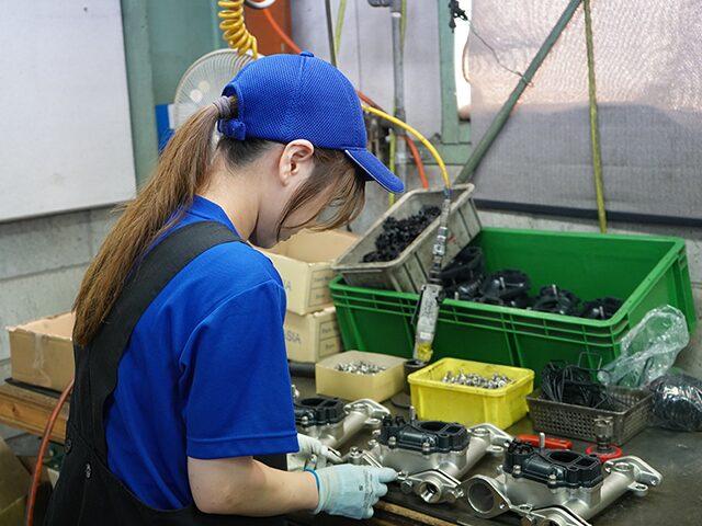 海外から取り寄せた部品を組み立て、水道水用のポンプを完成品として製造しています。作業は、細かい手作業も多いため、正確さと丁寧さが求められる一方、完成した製品が社会で役立つ実感を得られるやりがいの大きい仕事です。未経験の方でも、先輩社員が一つひとつの工程を丁寧に指導しますので安心してスタートできます。